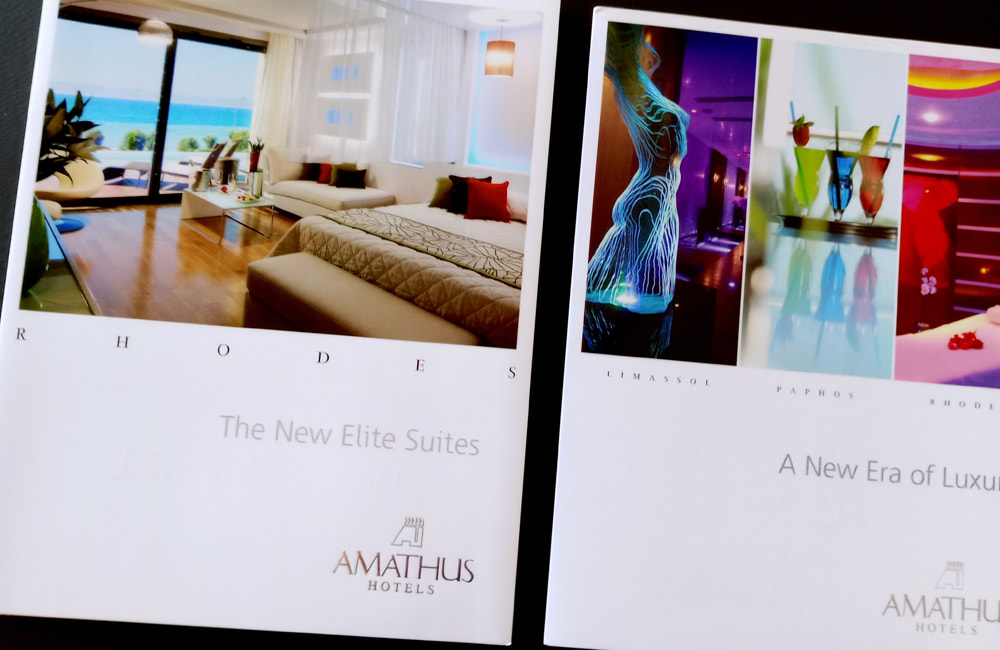Η τυπογραφία επιλέχθηκε με γνώμονα τη διαχρονικότητα και την καθαρότητα, υποστηρίζοντας τον χαρακτήρα του brand ως luxury προορισμό χωρίς υπερβολές. Κάθε στοιχείο σχεδιάστηκε ώστε να λειτουργεί με συνέπεια και αρμονία, διατηρώντας την αναγνωρισιμότητα του Amathus σε όλα τα μέσα επικοινωνίας. Το εικαστικό σύστημα εφαρμόζεται με ενιαία φιλοσοφία σε έντυπα, wine lists, menus, gift vouchers, υλικό spa & wellness, καθώς και σε κάθε σημείο επαφής του brand με τον επισκέπτη.