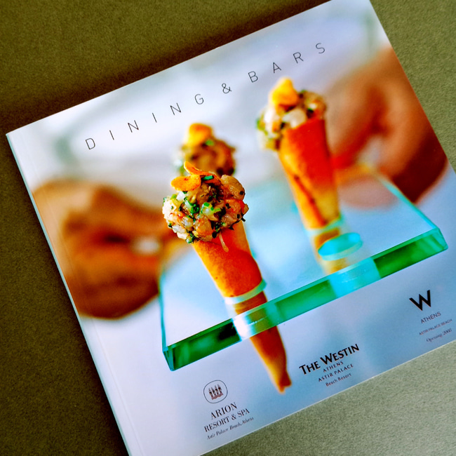 Ιδιαίτερη έμφαση δίνεται στη μοναδική αισθητική κάθε χώρου, με φωτογραφίες που αποτυπώνουν την κομψότητα των εσωτερικών χώρων, το μαγευτικό παραθαλάσσιο τοπίο και την εκλεπτυσμένη παρουσίαση των γαστρονομικών δημιουργιών και των ποτών. Ο προσεγμένος σχεδιασμός του εντύπου εξασφαλίζει μια δυναμική και απολαυστική ανάγνωση, ενώ η καλαίσθητη τυπογραφία και η ισορροπημένη δομή του διατηρούν έναν αέρα διακριτικής πολυτέλειας. Πέρα από την παρουσίαση των εστιατορίων και των bars του resort, το έντυπο ενσαρκώνει τη φιλοσοφία φιλοξενίας του Astir Palace—μια φιλοσοφία όπου κάθε γεύμα είναι μια εμπειρία και κάθε χώρος μια πρόσκληση για να απολαύσει κανείς το καλύτερο της αθηναϊκής γαστρονομικής σκηνής. Αυτό το έντυπο δεν είναι απλώς ένας γαστρονομικός οδηγός, αλλά μια επιμελημένη παρουσίαση γαστρονομικής υπεροχής, σχεδιασμένη να εμπνεύσει και να προσκαλέσει τους επισκέπτες σε έναν κόσμο απαράμιλλης γεύσης, εξαιρετικής εξυπηρέτησης και μοναδικής ατμόσφαιρας.