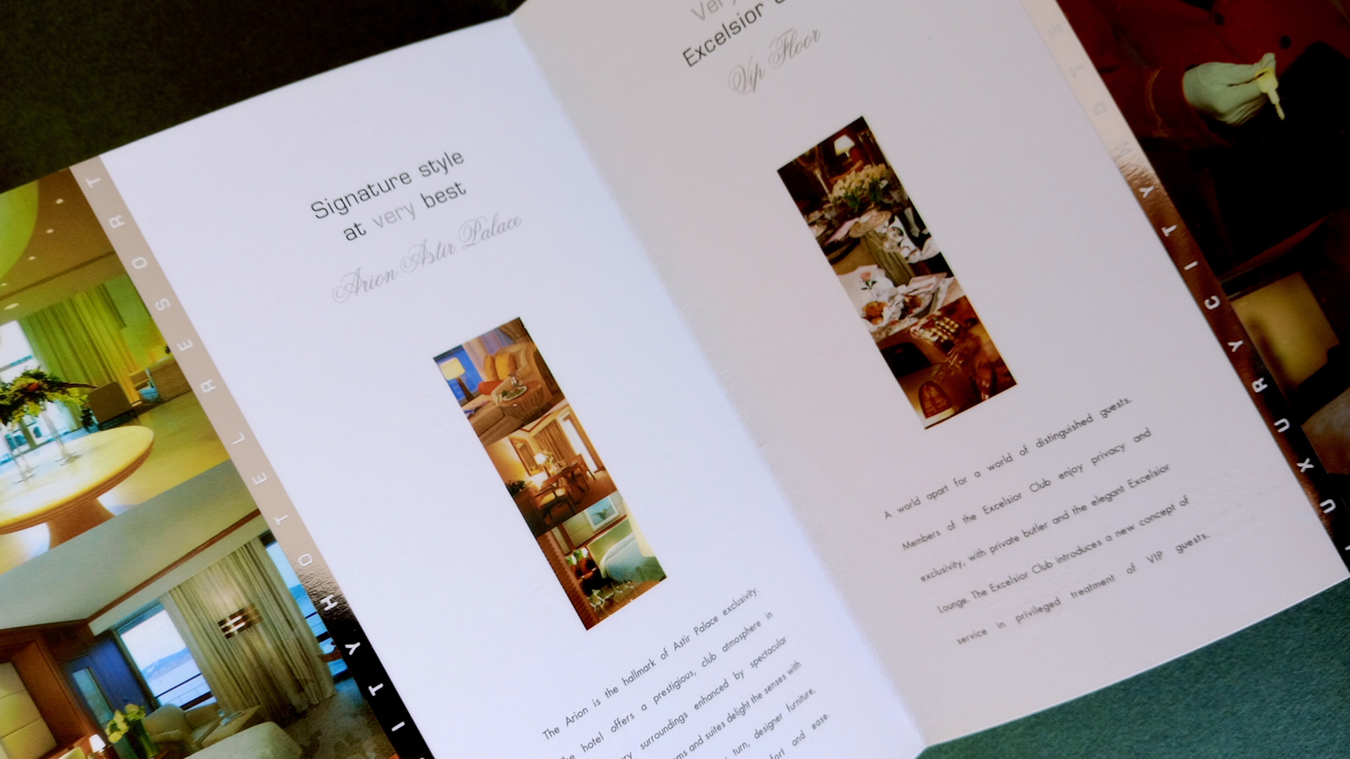 Το φωτογραφικό υλικό παίζει καθοριστικό ρόλο στη συνολική αισθητική του εντύπου, με εικόνες που αποπνέουν αυθεντικότητα και κομψότητα. Οι λήψεις επιλέγονται προσεκτικά ώστε να μεταφέρουν την αίσθηση της απόλυτης χαλάρωσης και πολυτέλειας, ενώ η διάταξη των κειμένων διατηρεί μια ισορροπημένη και εκλεπτυσμένη ροή ανάγνωσης. Το έντυπο του Astir Palace Vouliagmeni Athens δεν αποτελεί απλώς έναν πληροφοριακό οδηγό, αλλά μια βιωματική εισαγωγή στην εμπειρία φιλοξενίας που προσφέρει το εμβληματικό αυτό resort. Κάθε λεπτομέρεια, από το σχεδιασμό μέχρι την επιλογή των υλικών και τη σύνθεση του περιεχομένου, εξυπηρετεί έναν και μόνο σκοπό: να δημιουργήσει μια αίσθηση προσμονής και επιθυμίας για μια μοναδική διαμονή, αντάξια της ιστορίας και της φήμης του Astir Palace.