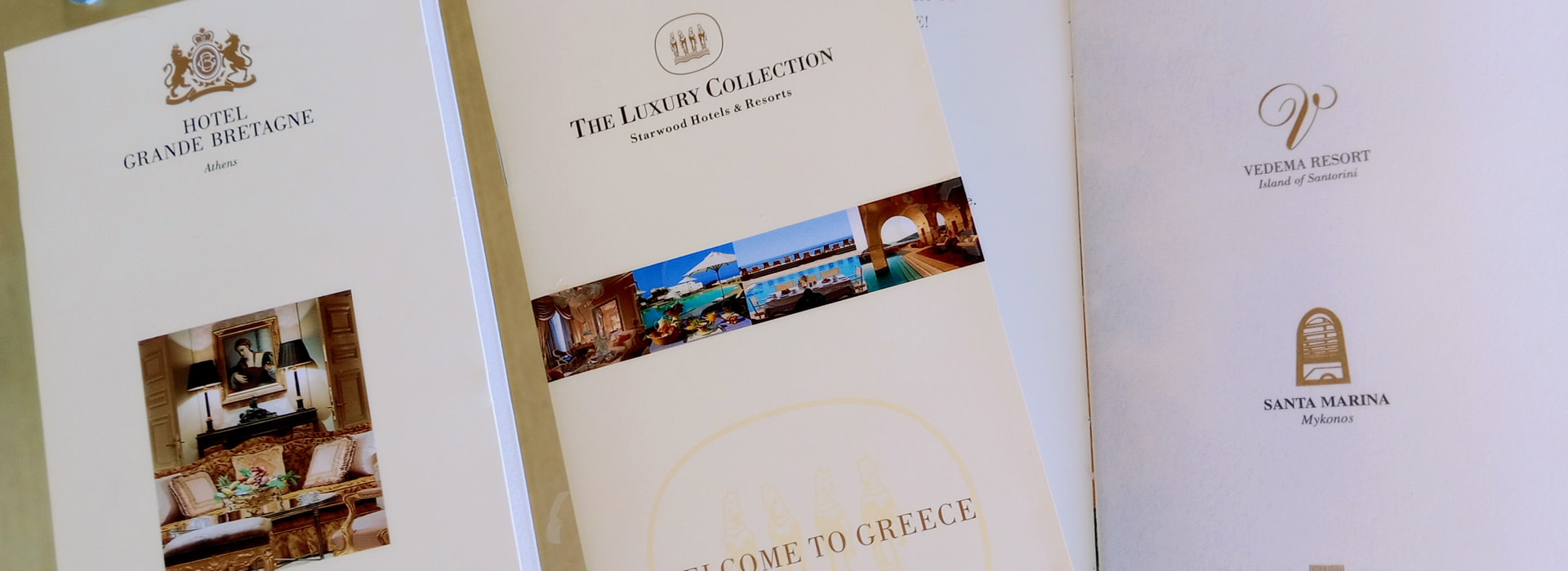 Το Hotel Grande Bretagne, a Luxury Collection Hotel Athens, ένα σύμβολο πολυτέλειας και διαχρονικής κομψότητας στην καρδιά της Αθήνας, απαιτεί έναν σχεδιασμό εντύπων εταιρικής ταυτότητας που να αντικατοπτρίζει το κύρος και την αισθητική του. Ο σχεδιασμός βασίζεται στη διατήρηση της κλασικής ταυτότητας του ξενοδοχείου, με μια προσεγμένη χρωματική παλέτα που περιλαμβάνει αποχρώσεις χρυσού, βαθύ μπλε, μπεζ και λευκού. Η τυπογραφία είναι κομψή και διαχρονική, με serif γραμματοσειρές που αποπνέουν κύρος και υψηλή αισθητική.