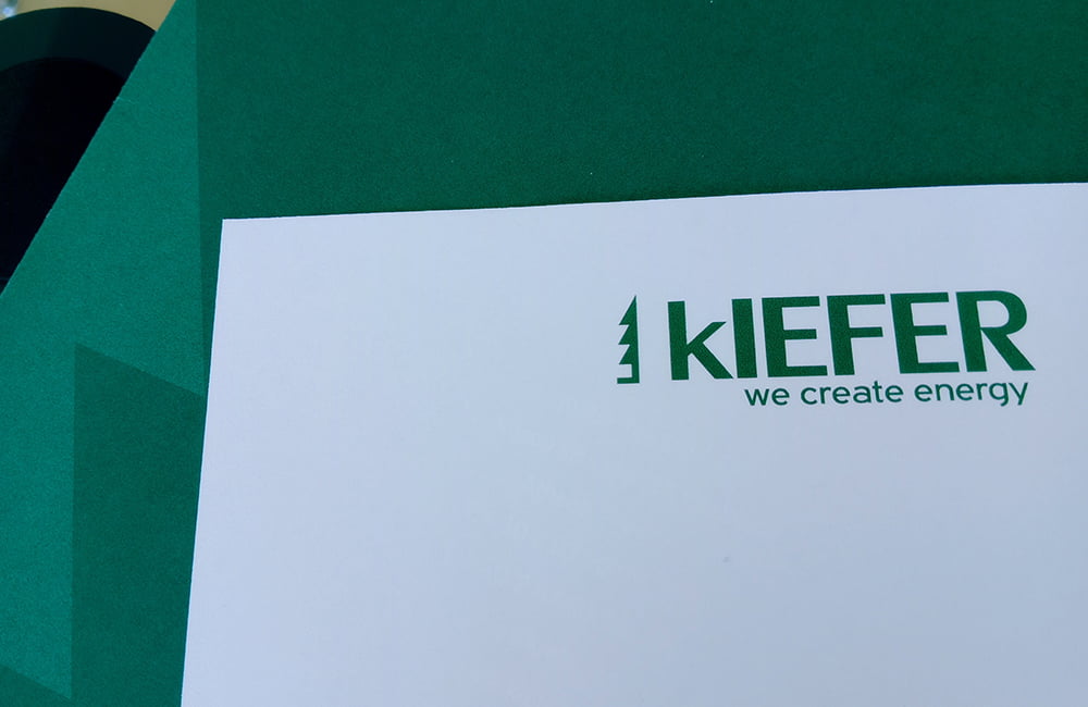 Ο σχεδιασμός της εταιρικής ταυτότητας της Kiefer, μιας ελληνικής κατασκευαστικής εταιρείας με εξειδίκευση στις Ανανεώσιμες Πηγές Ενέργειας, βασίζεται σε σύγχρονη αισθητική και λιτές γραμμές.