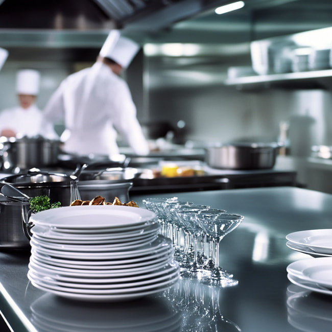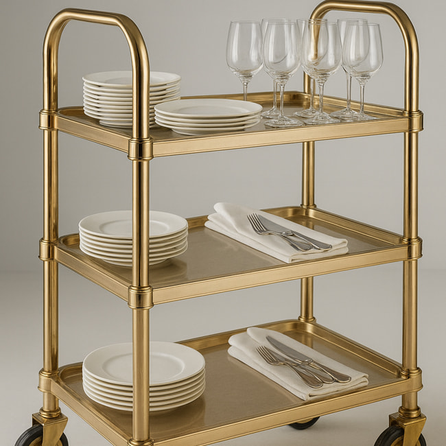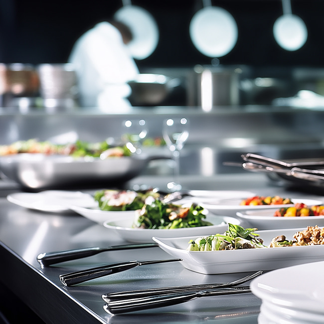 Κάθε τεταρτημόριο περιλαμβάνει ένα ξεκάθαρο εικονίδιο, με έντονη αλλά κομψή εφαρμογή: η καμπανούλα-σερβίτσιο συμβολίζει την κουζίνα και την εστίαση, το τρόλεϊ εκπροσωπεί τον εξοπλισμό φιλοξενίας και τις υπηρεσίες, το ποτήρι κρασιού δηλώνει την έμφαση στην αισθητική της γαστρονομικής εμπειρίας, ενώ τα μαχαιροπίρουνα την καθημερινότητα. Όλα τα εικονίδια έχουν σχεδιαστεί σε λευκό χρώμα για να έχουν έντονη αντίθεση με το χρυσαφί φόντο, που μεταφέρει κύρος, εμπιστοσύνη και πολυτέλεια.