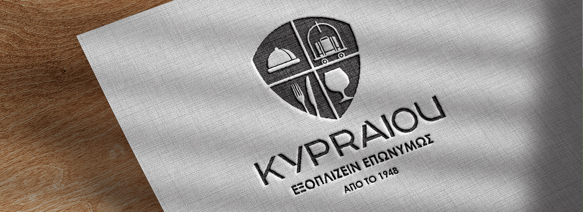 Ο σχεδιασμός του λογοτύπου της εταιρείας Kypraiou – Εξοπλίζειν Επωνύμως, βασίζεται σε μια αρμονική σύνθεση που αποτυπώνει με σαφήνεια τον χαρακτήρα, την εμπειρία και την αποστολή της εταιρείας. Στο κέντρο του σχεδίου κυριαρχεί μια ασπίδα, σύμβολο αξιοπιστίας, προστασίας και διαχρονικότητας, στοιχεία που χαρακτηρίζουν την πορεία της εταιρείας από το 1948 μέχρι σήμερα.