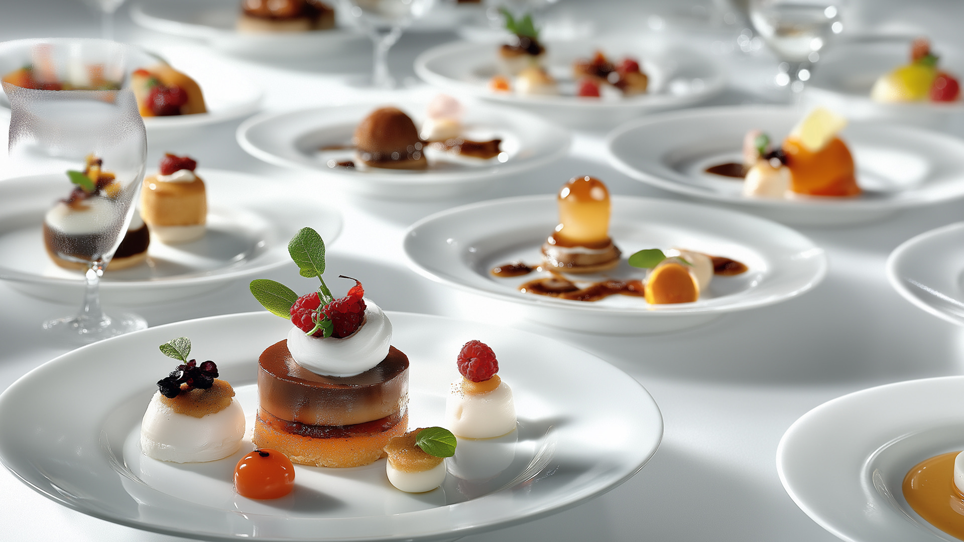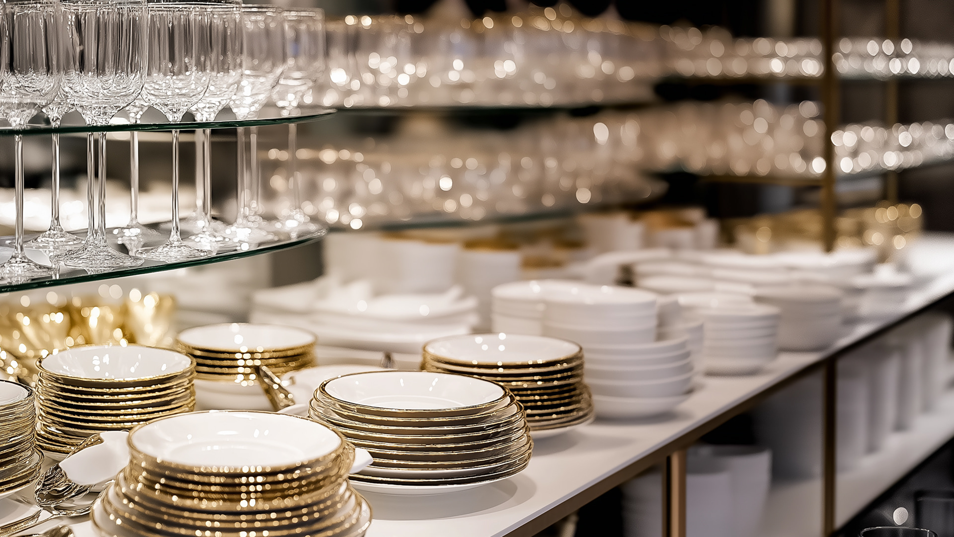 Κάθε τεταρτημόριο περιλαμβάνει ένα ξεκάθαρο εικονίδιο, με έντονη αλλά κομψή εφαρμογή: η καμπανούλα-σερβίτσιο συμβολίζει την κουζίνα και την εστίαση, το τρόλεϊ εκπροσωπεί τον εξοπλισμό φιλοξενίας και τις υπηρεσίες, το ποτήρι κρασιού δηλώνει την έμφαση στην αισθητική της γαστρονομικής εμπειρίας, ενώ τα μαχαιροπίρουνα την καθημερινότητα. Όλα τα εικονίδια έχουν σχεδιαστεί σε λευκό χρώμα για να έχουν έντονη αντίθεση με το χρυσαφί φόντο, που μεταφέρει κύρος, εμπιστοσύνη και πολυτέλεια.