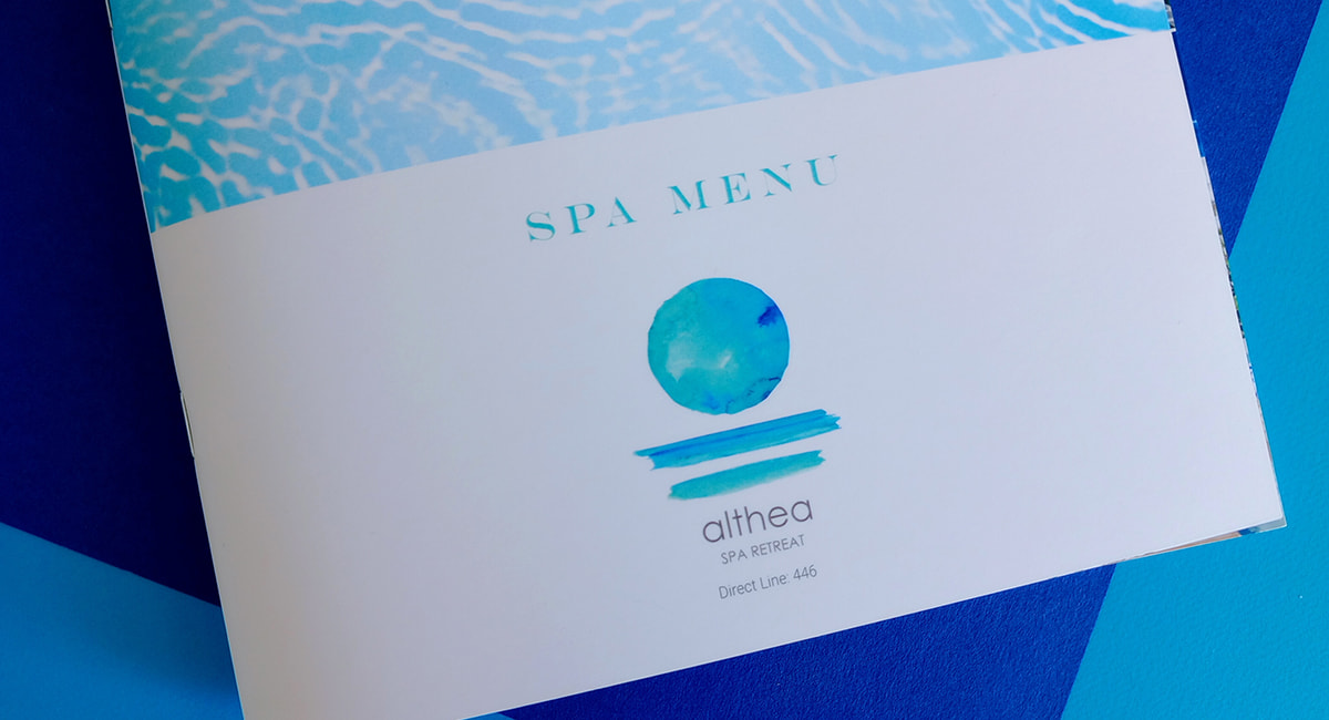 Το έντυπο έχει σχεδιαστεί με σκοπό να προσφέρει στους επισκέπτες ένα καταφύγιο ηρεμίας, ενσωματώνοντας την ουσία του Althea Spa Retreat μέσα από τη σύνδεση με το νερό και τη διαχρονική αξία της θεραπείας. Η κομψή διάταξη και η εικαστική αρμονία του καταλόγου δημιουργούν μια εμπειρία που ενθαρρύνει τους επισκέπτες να αγκαλιάσουν τη δύναμη της φύσης και να ανακαλύψουν την ουσιαστική επίδραση της νερού στη συνολική τους ευεξία.
