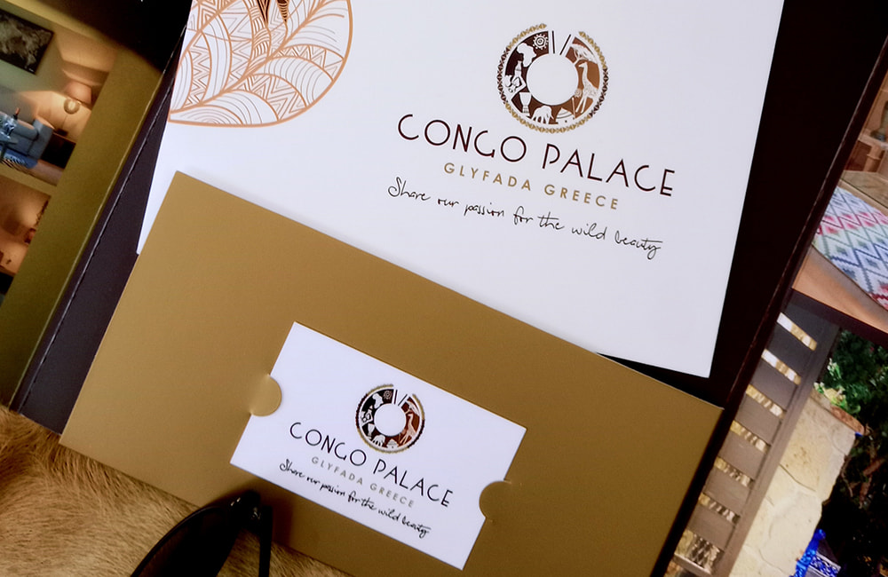 Η χρωματική παλέτα του λογότυπου, με τις γαιώδεις αποχρώσεις του καφέ, της ώχρας και του χρυσού, παραπέμπει στη θερμή αφρικανική γη, στον ήλιο και στα φυσικά υλικά – στοιχεία που βρίσκουν την αντανάκλασή τους τόσο στο design του χώρου όσο και στις εμπειρίες που προσφέρει το ξενοδοχείο. Η τυπογραφία, λιτή και σύγχρονη, ενισχύει την κομψότητα του brand και δημιουργεί την απαραίτητη ισορροπία ανάμεσα στο πλούσιο συμβολικό στοιχείο και τη σύγχρονη τουριστική ταυτότητα. Η αναφορά στο “Glyfada – Greece” λειτουργεί ως γεωγραφικός γέφυρας ανάμεσα στην Αφρικανική έμπνευση και το σύγχρονο αθηναϊκό lifestyle, εδραιώνοντας το Congo Palace ως έναν χώρο που συνδέει κουλτούρες, αισθήσεις και προορισμούς. Το λογότυπο δεν απεικονίζει απλώς μια ταυτότητα. Αφηγείται ένα ταξίδι, έναν διαπολιτισμικό διάλογο που ξεκινά από την καρδιά της Αφρικής και καταλήγει στην ελληνική φιλοξενία του σήμερα. Είναι ένας εικαστικός χαιρετισμός στον πλούτο των πολιτισμών, μια διακριτική δήλωση ότι εδώ, η πολυτέλεια δεν έρχεται μέσα από την επιτήδευση, αλλά μέσα από την αυθεντικότητα, τη σύνδεση και τη φροντίδα. Στο Congo Palace, κάθε διαμονή είναι ένα ταξίδι. Και το λογότυπο του ξενοδοχείου είναι η πρώτη σφραγίδα αυτής της εμπειρίας.