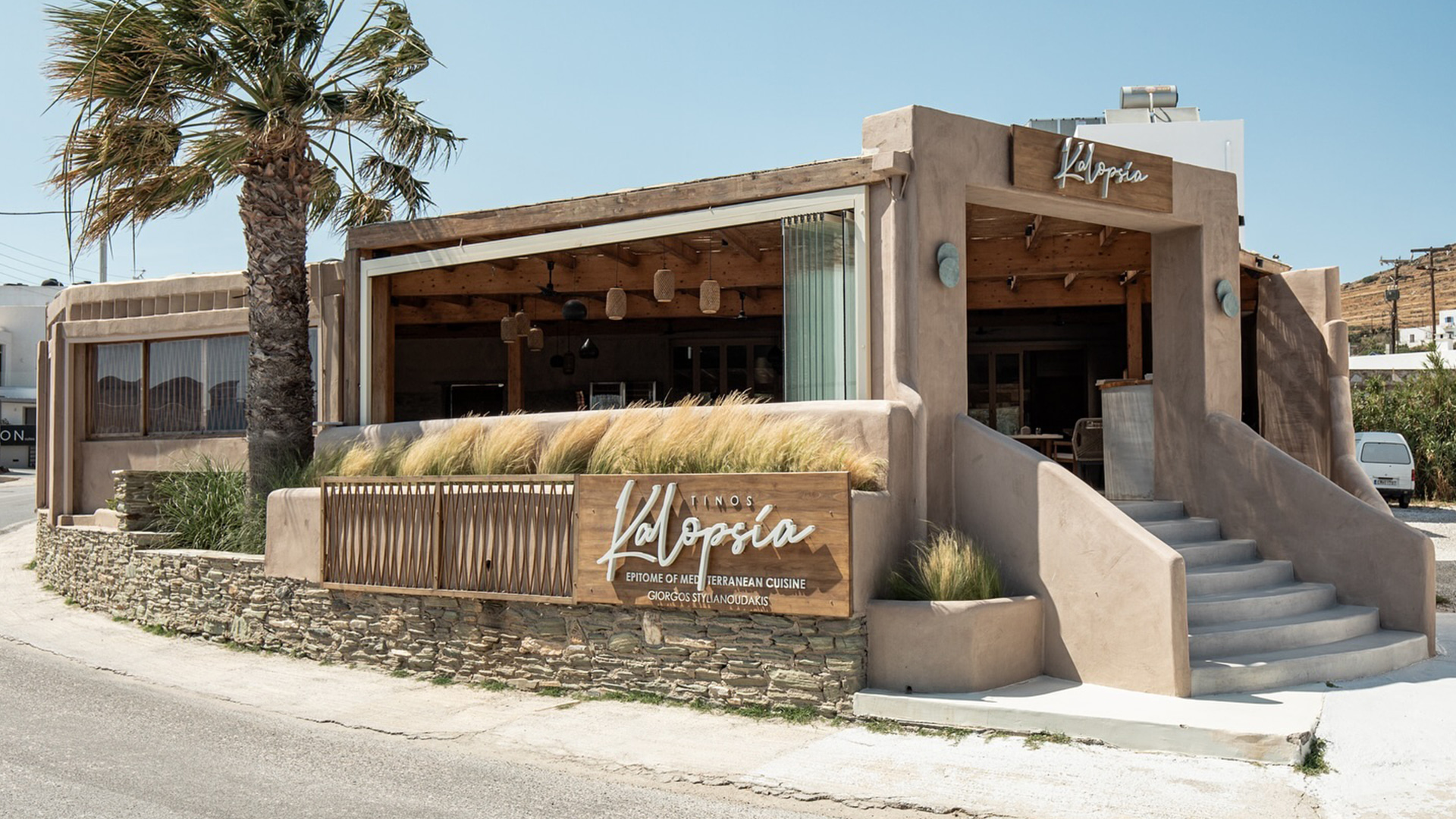 Στην Τήνο, έναν τόπο που εμπνέει με το φως, τη γη και την απλότητά του, το Kalopsía γεννιέται με σκοπό να τιμήσει τις γεύσεις του Αιγαίου με έναν τρόπο λιτό, αυθεντικό και σύγχρονο. Όλα ξεκινούν από το λογότυπο— μια χειρόγραφη απεικόνιση της λέξης “Kalopsía”, που μοιάζει να έχει σχεδιαστεί πάνω σε τραπέζι από ξύλο ελιάς, με μελάνι πικραμυγδάλου. Οι καμπύλες του γραφικού στυλ αποπνέουν ζεστασιά, προσβασιμότητα και μια ανεπιτήδευτη φιλικότητα, σαν ένα καλωσόρισμα από παλιά. Η φράση “Epitome of Mediterranean Cuisine” λειτουργεί ως υπόσχεση: εδώ η μεσογειακή κουζίνα δεν είναι ένα ακόμη εστιατορικό στιλ. Είναι το απόσταγμα ενός πολιτισμού που ζει μέσα από τη γεύση, τη φιλοξενία, την απλότητα και την ποιότητα της καθημερινότητας.