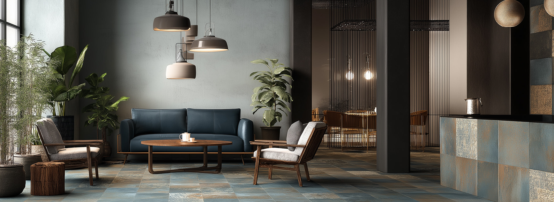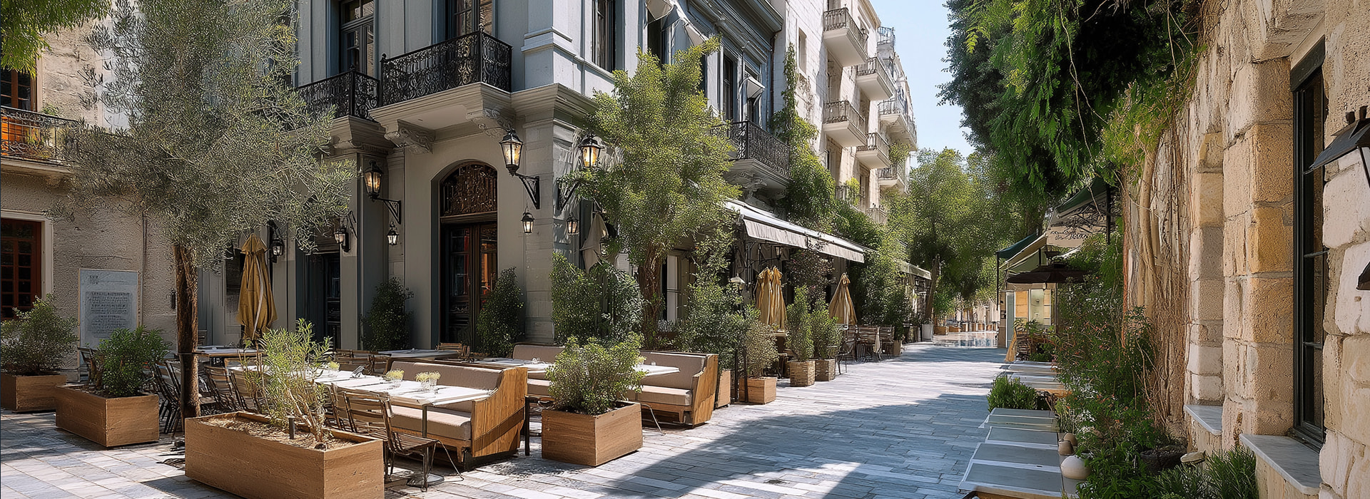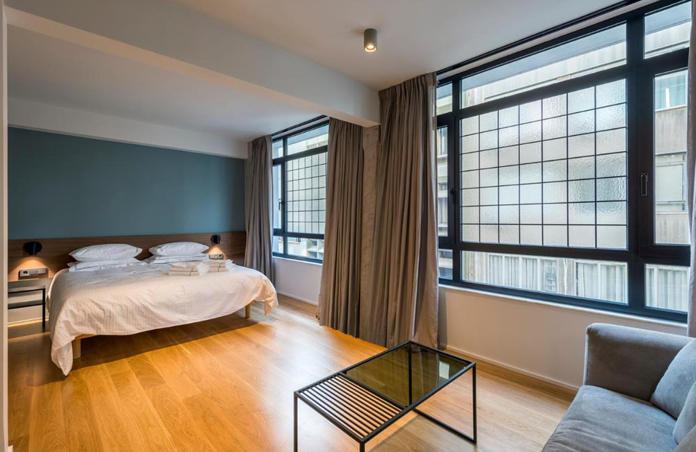 Υλικά όπως το ατσάλι, το ξύλο και το γυαλί, σε συνδυασμό με γήινους τόνους, αντανακλούν τον σύγχρονο χαρακτήρα της πόλης, ενώ παράλληλα δημιουργούν μια ζεστή και φιλόξενη ατμόσφαιρα.