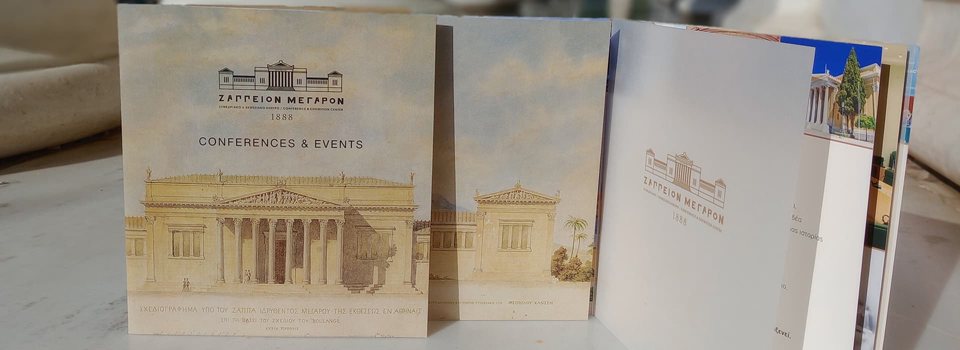 Τα έντυπα του Ζαππείου Μεγάρου για εκθέσεις και εκδηλώσεις αποτελούν μια ολοκληρωμένη και προσεκτικά σχεδιασμένη παρουσίαση που αναδεικνύει τη μοναδικότητα και την πολιτιστική σημασία του χώρου.