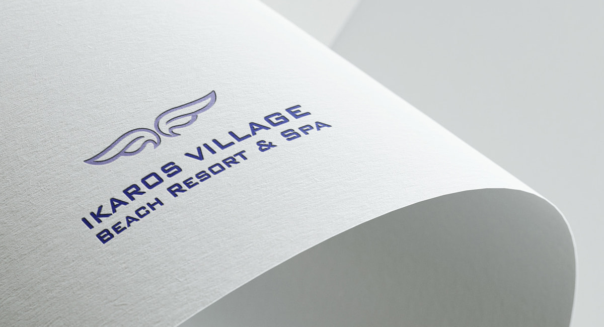 Δύο φτερά — λιτά, συμμετρικά, καθαρά σχεδιασμένα — πλαισιώνουν το όνομα του resort. Δεν είναι φανταχτερά, δεν κραυγάζουν. Είναι ψίθυρος δύναμης και κομψότητας. Αναπαριστούν την πτήση του Ίκαρου, όχι στη δραματική της κορύφωση, αλλά στην πιο καθαρή της στιγμή: εκεί που ο Ίκαρος απογειώνεται, γεμάτος φως, γεμάτος προσδοκία.