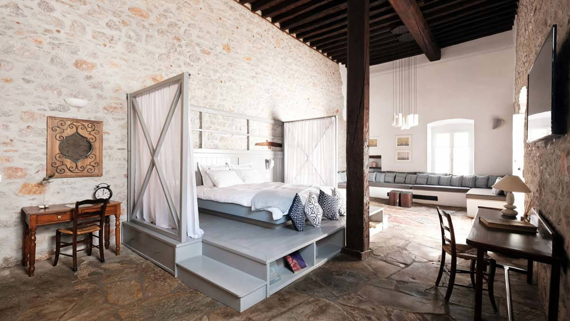 Κι αν το “art of living” μπορεί κάπου να αποκτήσει νόημα πέρα από τις λέξεις, τότε είναι εδώ — σε μια αυλή με γιασεμί, κάτω από κεραμίδια του 18ου αιώνα, πίσω από παράθυρα που κοιτάνε τη θάλασσα της Ύδρας και μας ψιθυρίζουν: