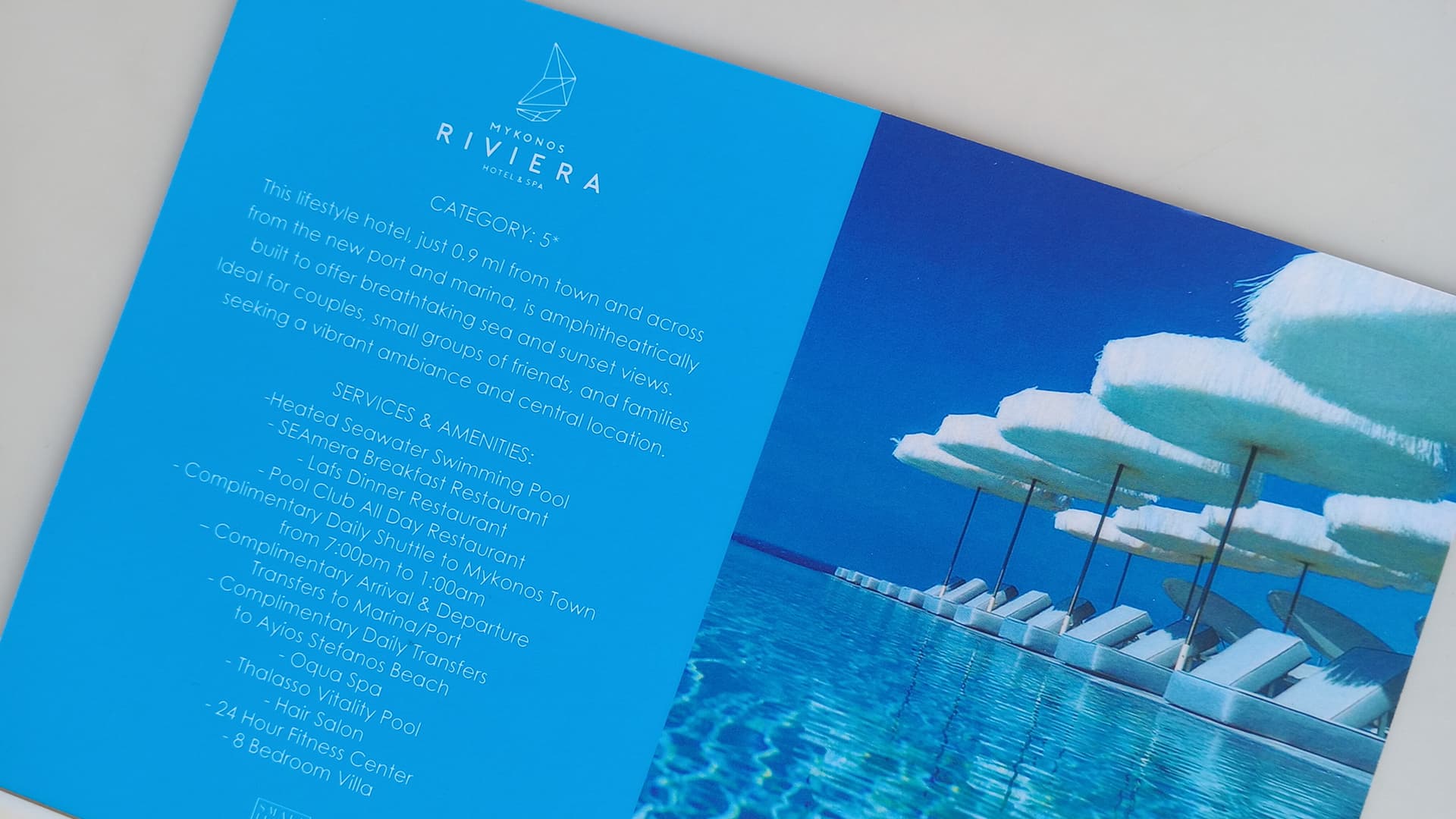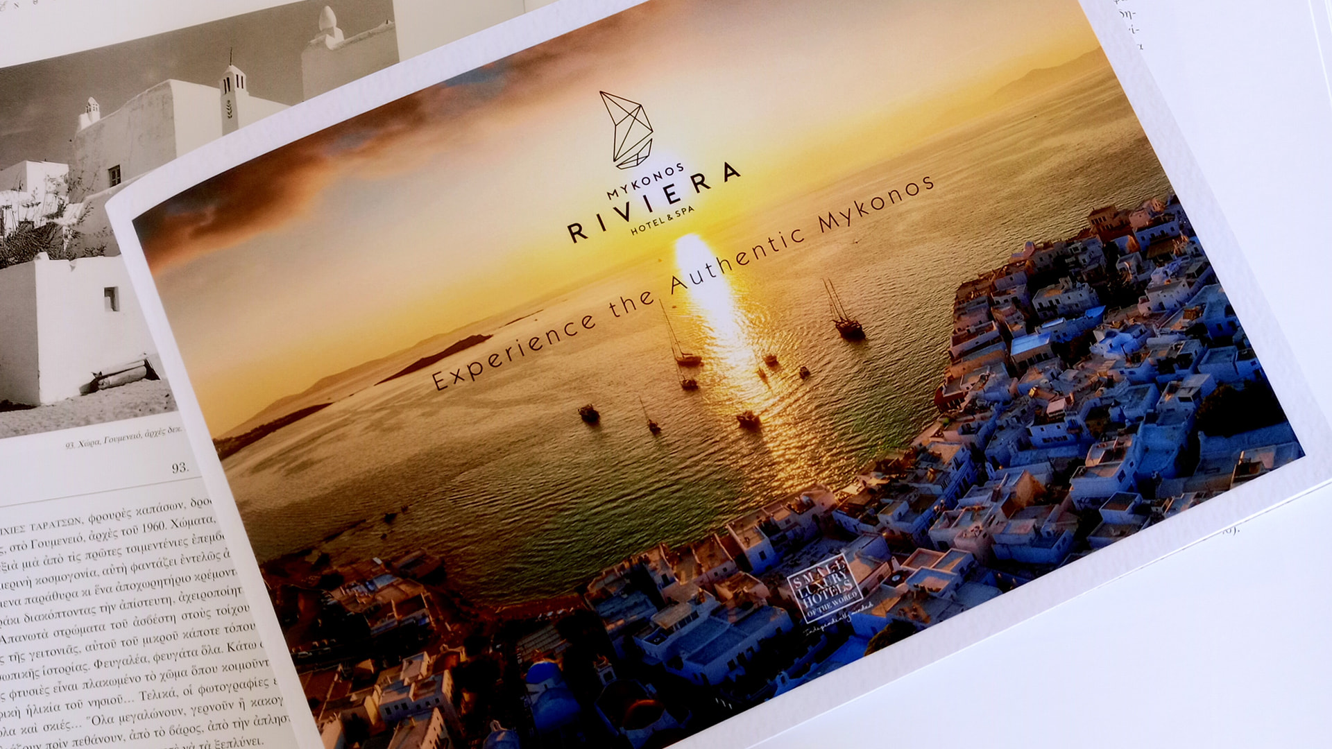 Το έντυπο του Mykonos Riviera Hotel & Spa δεν σχεδιάστηκε απλώς για να πληροφορεί. Δημιουργήθηκε για να συνομιλεί με την ψυχολογία του ταξιδιώτη, να προκαλεί επιθυμία, να γεννά εικόνες, να εισάγει τον αναγνώστη σε έναν κόσμο όπου η φιλοξενία αγγίζει την έννοια της τέχνης.