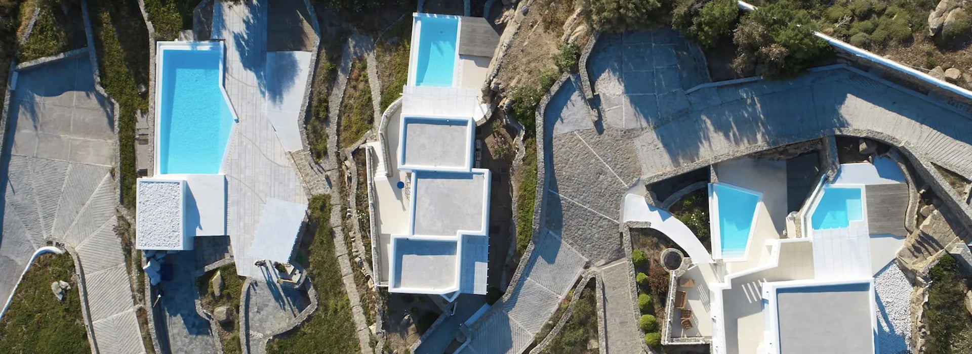 Οι εικόνες δεν σε προκαλούν. Σε προσκαλούν. Είναι τραβηγμένες έτσι ώστε να μην σε τοποθετούν ως θεατή, αλλά να σου επιτρέπουν να σταθείς μέσα τους. Ένα καρέ με θέα την πισίνα, ένα μισάνοιχτο λευκό πανί που αφήνει το φως να περάσει, μια γωνία με μπλε παράθυρο και σκιά από κυκλαδίτικη πέργκολα — όλα σχεδιασμένα όχι για να εντυπωσιάσουν, αλλά για να ξυπνήσουν το αίσθημα της παρουσίας.
