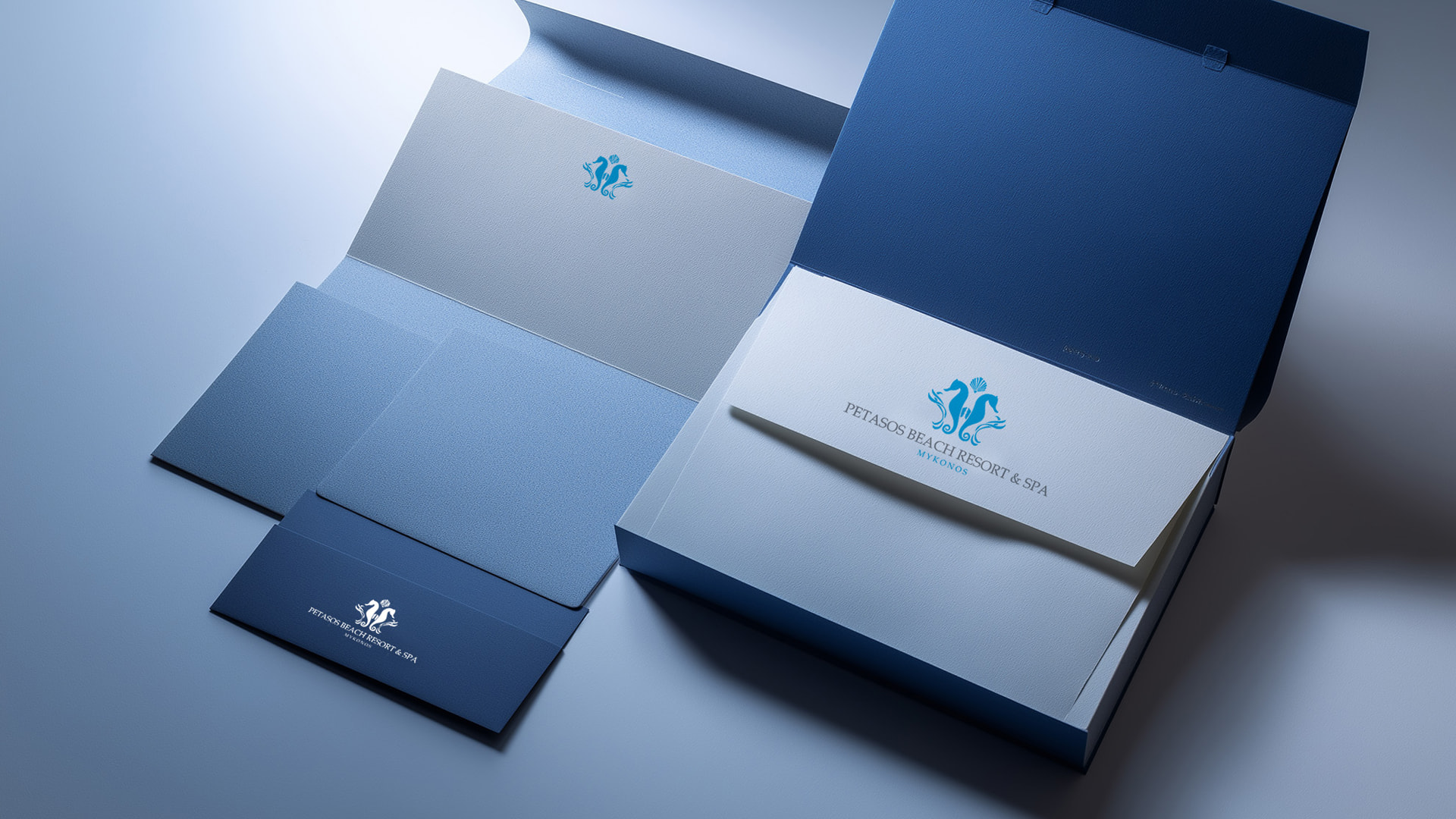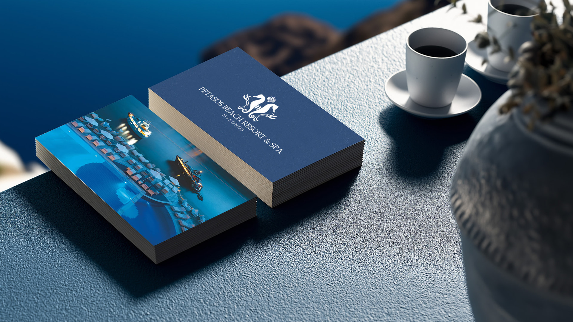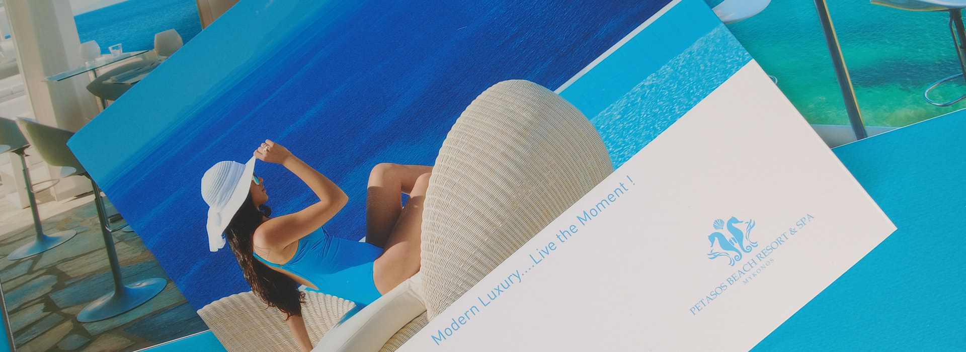 Ο σχεδιασμός των έντυπων υλικών για το Petasos Beach Resort & Spa δεν επιθυμεί να πείσει. Επιθυμεί να συντονίσει.