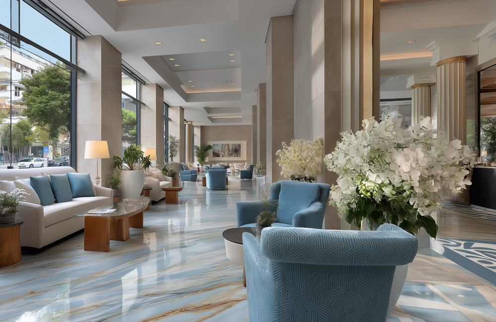 Η επιλογή της χρυσο-μπρονζέ απόχρωσης δεν είναι απλώς αισθητική· είναι ουσιαστική, με βάθος και νοηματοδότηση. Δεν εκφράζει μια επιδεικτική πολυτέλεια, αλλά έναν διαχρονικό χαρακτήρα, διακριτικό και σταθερό, που έχει τις ρίζες του στην ελληνική ιδέα της φιλοξενίας: πολυτελής αλλά χωρίς περιττό στόμφο, προσιτός αλλά χωρίς να χάνει την αρχοντιά του. Είναι το χρώμα του φωτός καθώς δύει πάνω στα νεοκλασικά της πόλης, της ανάμνησης ενός καλού δείπνου σε ένα κομψό roof garden, της ήρεμης εμπιστοσύνης που εμπνέει ένα περιβάλλον προσεγμένο μέχρι την τελευταία λεπτομέρεια. Είναι η γυαλάδα του μπρούντζου στο πόμολο μιας παλιάς αθηναϊκής πόρτας· είναι η λάμψη μιας πρώτης εντύπωσης που μένει.