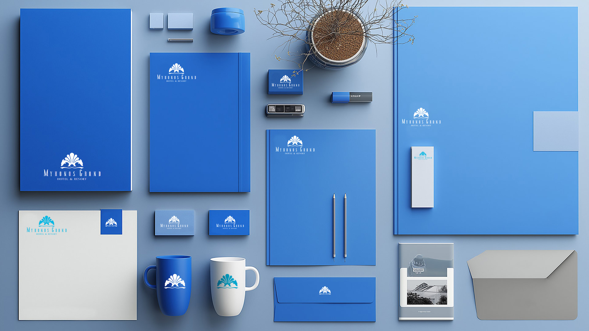 Σχεδιάσαμε μια εταιρική ταυτότητα που αντλεί έμπνευση από το ίδιο το περιβάλλον του resort: το λευκό των κυκλαδίτικων όγκων, το απαλό και βαθύ μπλε του Αιγαίου, και τις χρυσαφένιες αποχρώσεις του ηλιοβασιλέματος. Με οργανικές καμπύλες, λιτή τυπογραφία και καθαρή οπτική γλώσσα, εκφράσαμε την ηρεμία και τη φινέτσα που χαρακτηρίζουν το Mykonos Grand, διασφαλίζοντας την απόλυτη συνέπεια και συνοχή σε κάθε μέσο.