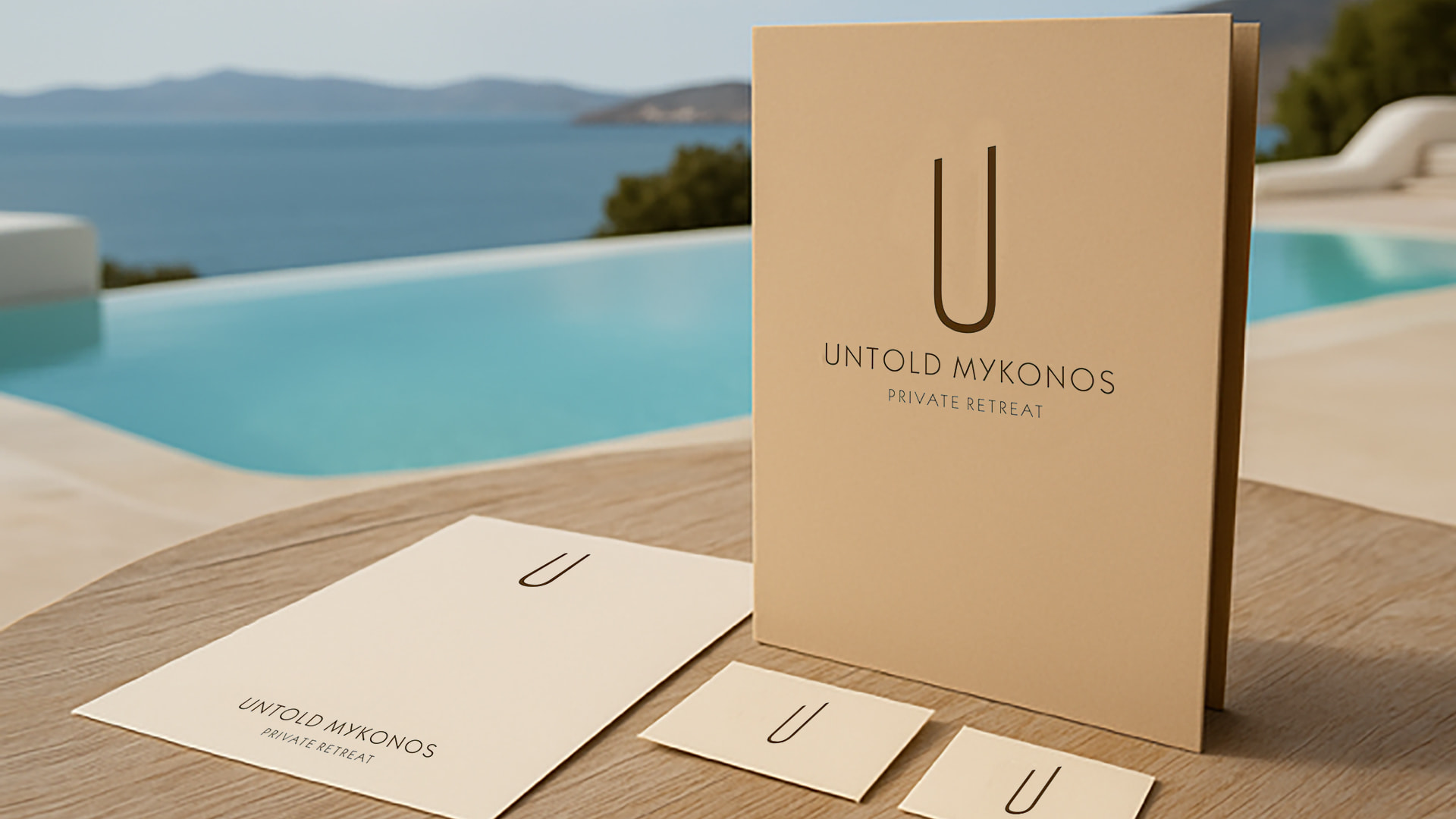 Το Untold Mykonos – Private Retreat δεν είναι απλώς ένας προορισμός∙ είναι ένα συναίσθημα. Και το λογότυπο του λειτουργεί ως η πρώτη αθόρυβη υπόσχεση αυτού του συναισθήματος—μια πύλη προς το “ανείπωτο”, το σπάνιο, το απόλυτα προσωπικό.